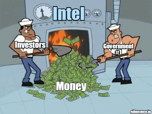Замечательная идея вкачать 10 миллиардов в Intel, чтобы компания научилась работать с эффективностью налоговой службы. Ждем процессоры которые надо получать в МФЦ по талонам раз в пятилетку после сбора всех справок.