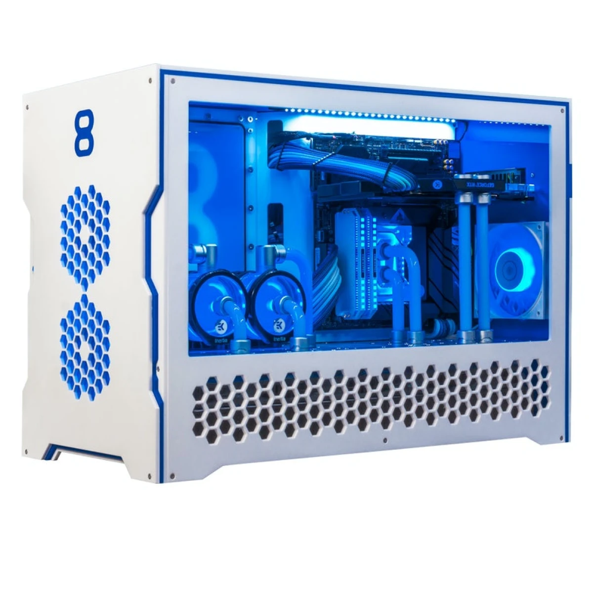 8Pack Comet MK2 - это компактная система с жидкостным охлаждением. Игровой ПК оснащен платформой Intel на базе процессора Intel Core i9-12900KS с разгоном до 5,2 ГГц, он установлен на материнскую плату ASUS ROG Strix Z690-G с 32 ГБ оперативной памяти Corsair Dominator Platinum RGB DDR5 5600 МГц. В связке с процессором работает видеокарта с водоблоком ASUS RTX 3090 TUF Gaming OC. Также есть два твердотельных накопителя WD Black SN850 M.2 емкостью 1 ТБ и один твердотельный накопитель Samsung 870 Evo емкостью 2 ТБ.