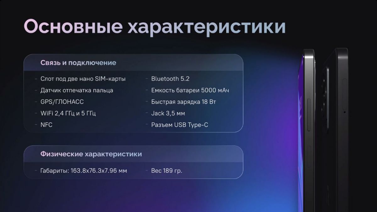 - Связь и подключения: USB-C, Jack 3.5 мм, Wi-Fi 802.11ac, Bluetooth 5.2, NFC, GPS, 4G, ГЛОНАСС, BeiDou, слот для двух нано SIM-карт