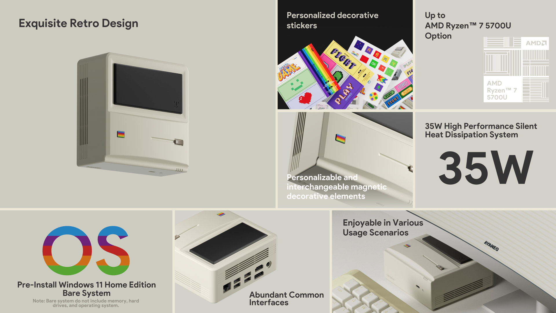 Ayaneo представила мини-ПК Retro Mini PC AM01 в стиле Macintosh, недавно в двух версиях на разных процессорах от AMD.