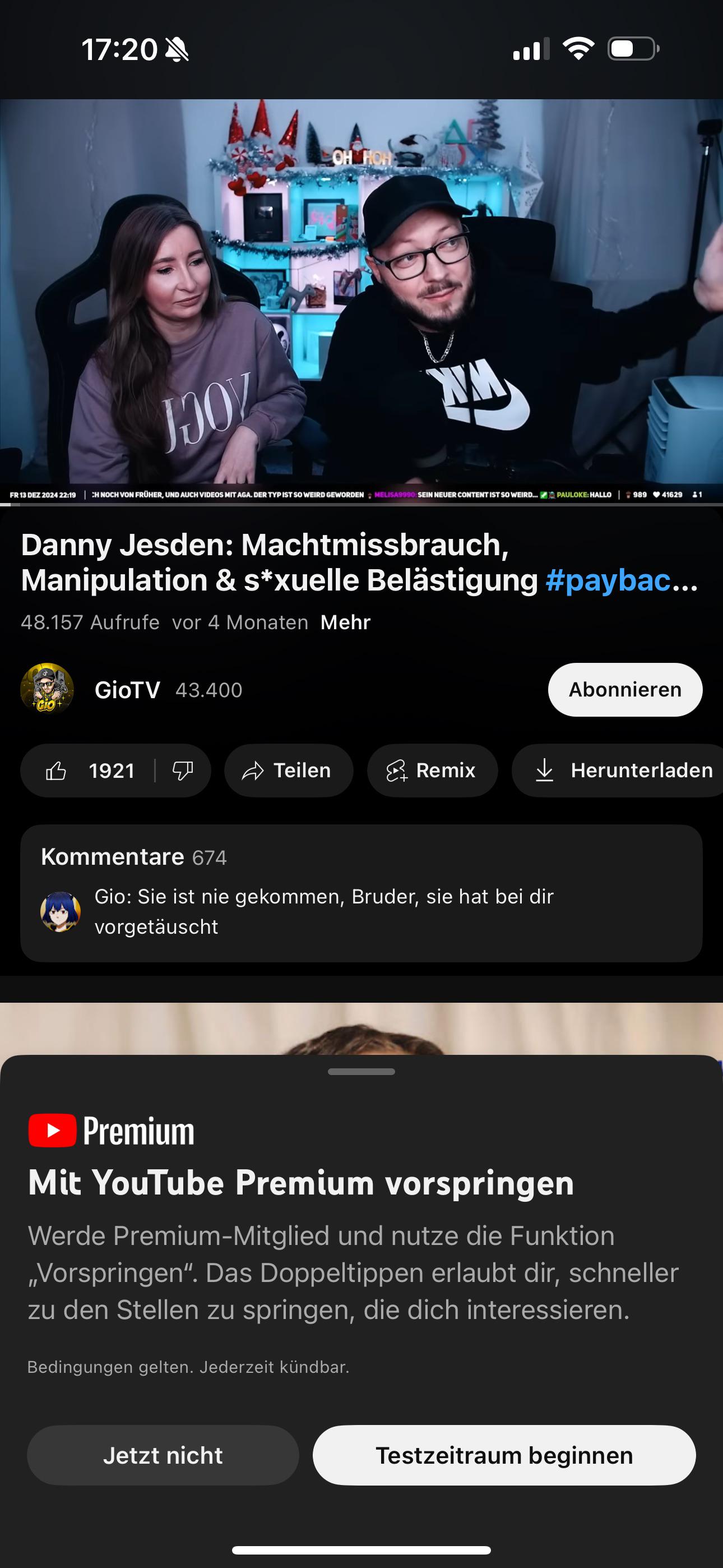 Пользователи YouTube сообщают о появлении нового уведомления, связанного с функцией перемотки видео. При двойном нажатии для пропуска части ролика некоторым зрителям демонстрируется предложение оформить подписку YouTube Premium для использования функции Пропустить вперед (Vorspringen или "Jump Ahead). Это нововведение вызвало замешательство и волну критики в адрес платформы.