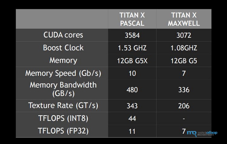 Для понимания всех этих чисел привожу сравнение с предыдущим GeForce GTX TITAN X.