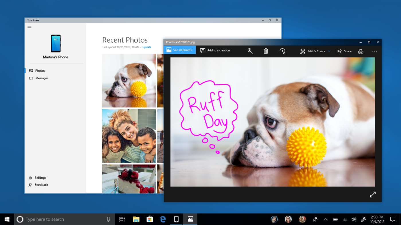 На прошлой неделе компания Microsoft начала тестировать новое приложение Your Phone для синхронизации мобильного устройства и ПК под управлением Windows 10. Такая возможность появилась в инсайдерских сборках Windows 10 Build 17728 (RS5) и Windows 10 Build 18204 (19H1). Теперь, по всей видимости приложение заработало на более ранней версии ОС.