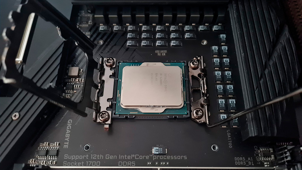 Как известно, новый сокет Intel LGA1700 стал намного крупнее LGA1200 и приобрёл вытянутый формат. При этом механизм фиксации и прижима процессора существенных изменений не претерпел. Это по-прежнему чрезвычайно сильный прижим с давлением лишь в 2 точки по центральной оси. И хотя Intel постараюсь компенсировать это утолщённой медной крышкой, как выяснилось, этого оказалось недостаточно.