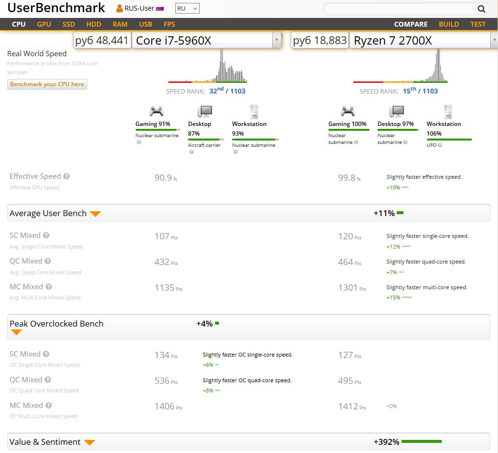 Steve Taller Нафиг Вы передо мною оправдываетесь? Не надо. Реально, смешат такие люди, что бегут вперёд в будущее, забывая, что надо жить именно настоящим. Я сравнил некорректно, действительно, 8 ядер (я думал у 5960Х 6 ядер), тогда 2700Х за 20 000 рублей ЛУЧШЕ ЕГО в разы: 1) дешевле 2) актуальная платформа 3) низкое энергопотребление 4) Отличный боксовский кулер в комплекте 5) Техпроцесс.