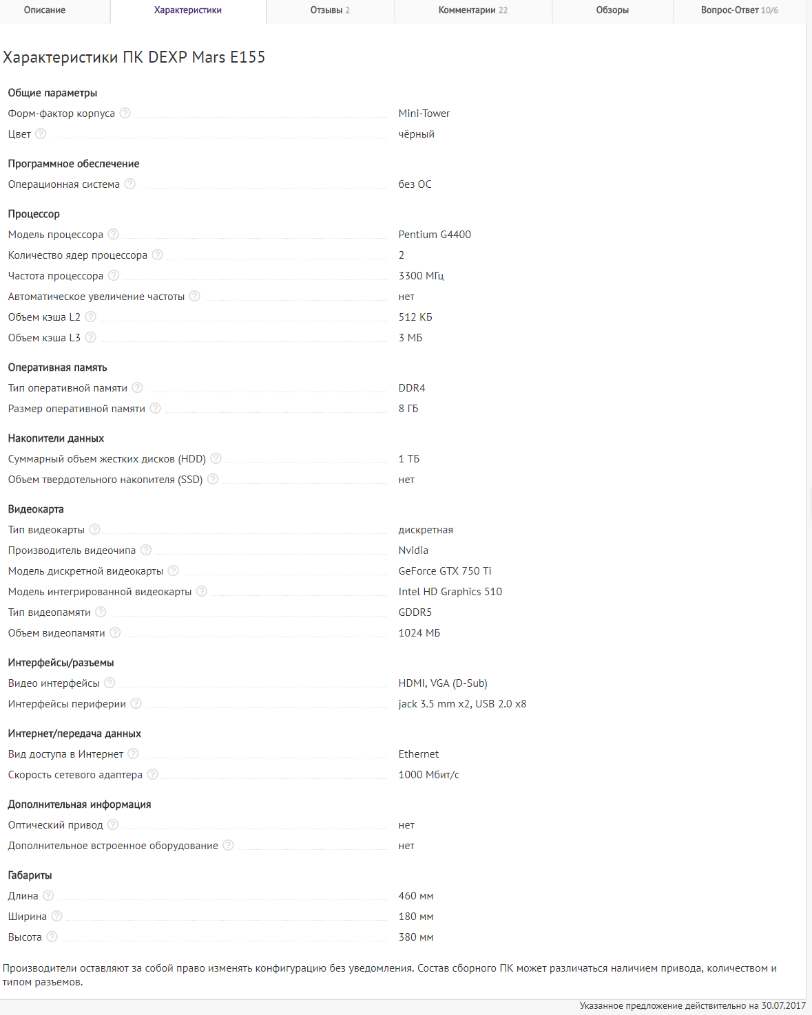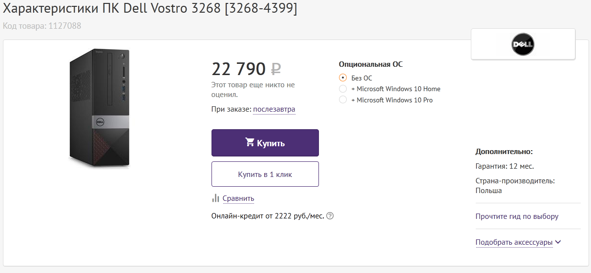 Вроде ПК от именитого производителя, вроде Core i5, но есть один подвох — нет дискретной видеокарты и Windows, что автоматически ставит крест на работу современных игр на этом ПК.