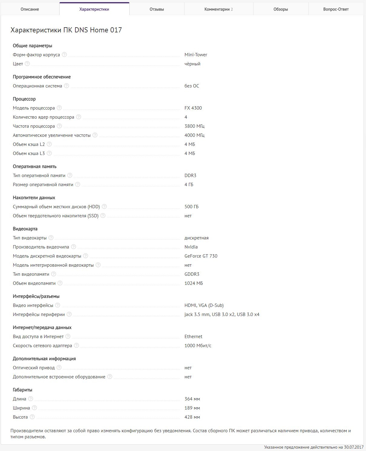 Все вроде бы ничего: и жесткий диск не очень маленький, и оперативки 8 ГБ, что тоже не плохо, даже видеокарта дискретная. Только вот есть два подвоха. Первый — довольно слабый процессор, для интернета и работы он еще ничего, а вот для игр не очень подходит. Второй — всего 1 ГБ видеопамяти у дискретной видеокарты! Нормально поиграть на таком компьютере получится разве, что в игры 2012 года и более ранние. И снова нет в комплекте Windows, а ее покупка — это дополнительные траты. Нет, кончено, можно унизится и порыться на помойке торрент-трекере, и установить пиратскую Windows за бесплатно, но нормальный человек до этого не опустится.