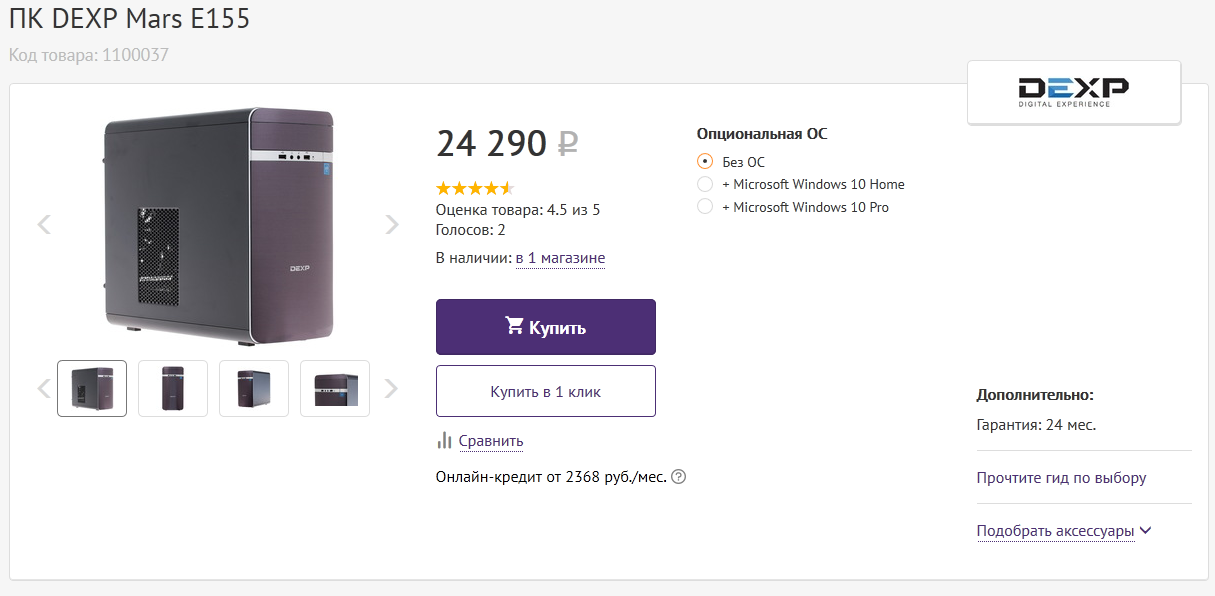 Так как, новый ПК, на котором можно было бы хоть как-то играть в современные игры, за 13 тыс. руб. мы не найдем, будем искать ПК за цену всего комплекта, то есть, приблизительно за 24 тыс. руб. Зайдем на сайт самого дешевого компьютерного магазина в моем городе и посмотрим, что там можно найти за такие деньги.