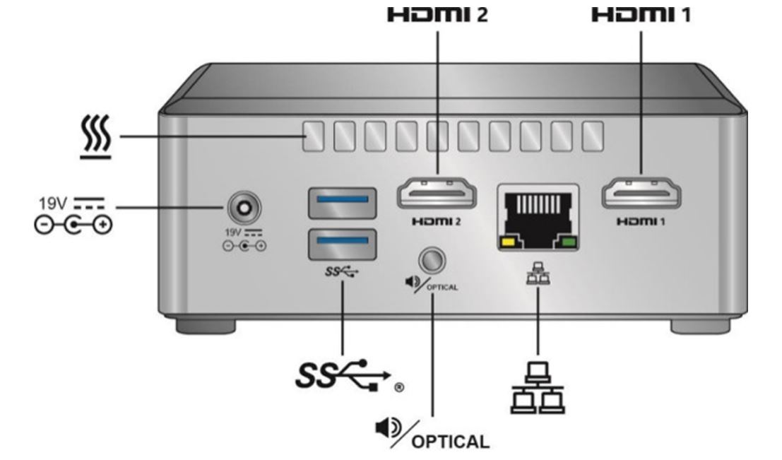 Среди доступных разъёмов упомянуты два интерфейса HDMI 2.0a, два порта USB 3.0 и два порта USB 2.0, гнездо для сетевого кабеля, а также слот для флеш-карты SD.