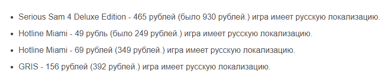 - Hotline Miami - 49 рубль (было 249 рублей.) игра имеет русскую локализацию.