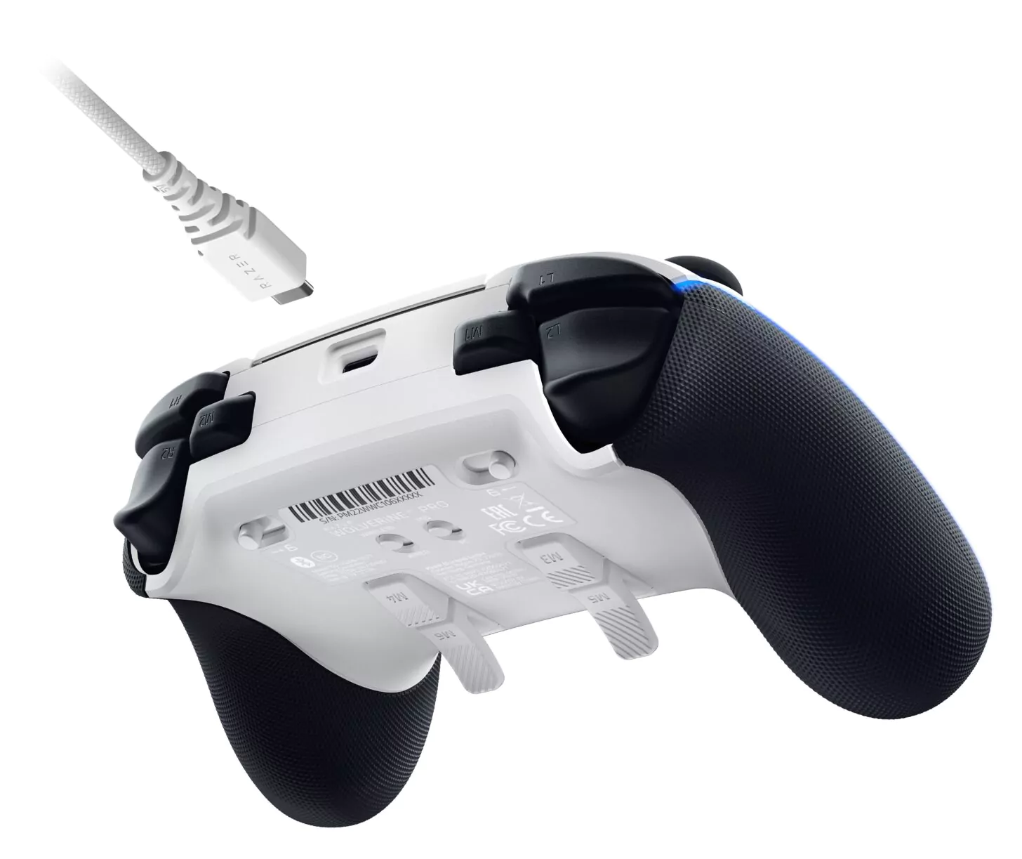 В Wolverine V2 Pro нет требования к запуску контроллера с помощью USB, подключенного к вашей консоли. Razer Wolverine V2 Pro - первый консольный контроллер оснащенный беспроводной связью со скоростью 2,4 ГГц. Хотя внутри контроллера есть Bluetooth модуль, Razer советует выполнить сопряжение исключительно с мобильным приложением Razer Controller, чтобы настроить цветовое освещение, настроить сцепление чувствительности и переназначить шесть дополнительных кнопок M1-M6, которые украшают верхнюю и заднюю панели контроллера Wolverine V2 Pro. Однако для подключения к самой консоли с частотой 2,4 ГГц по-прежнему потребуется USB-контроллер.