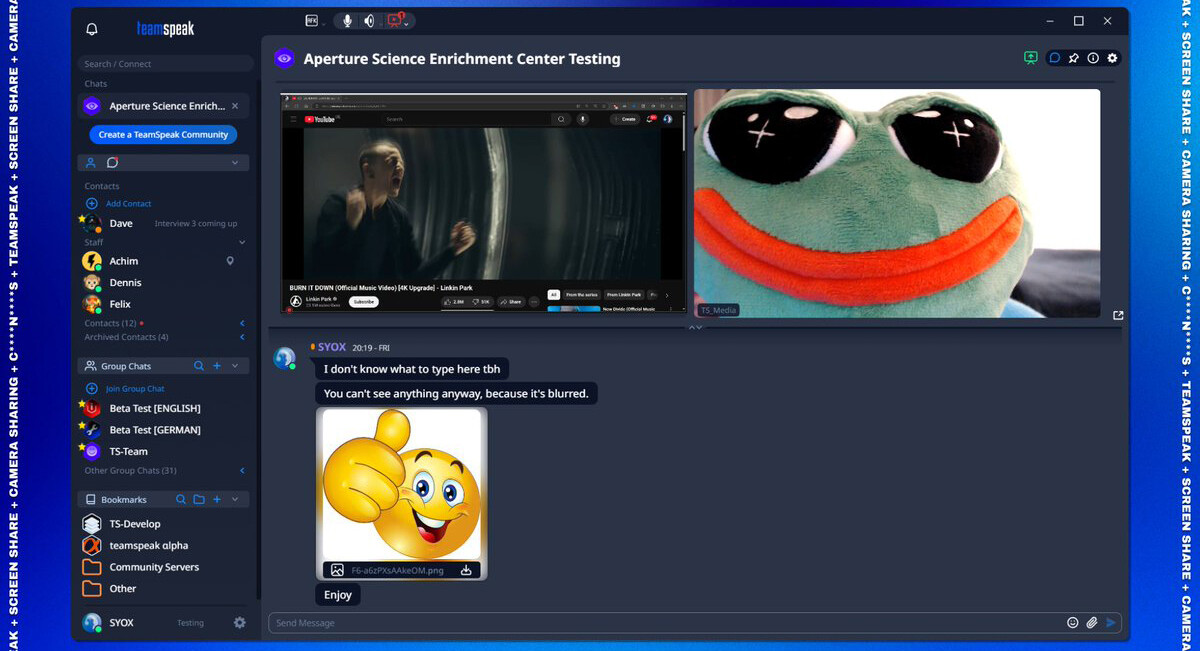 Разработчики TeamSpeak объявили о крупнейшем обновлении в истории мессенджера. Анонс сопровождался тизерами и шутками о «конкуренции» с Discord, включая ссылки на инструкции по удалению аккаунтов в Discord и отмене подписки Nitro.