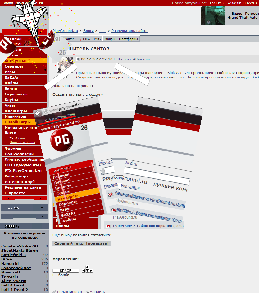 Предлагаю вашему вниманию сие развлечение - Kick Ass. Он представляет собой Java скрипт, при активации которого нам мгновенно предоставляют маленький кораблик, размещённый в браузере.