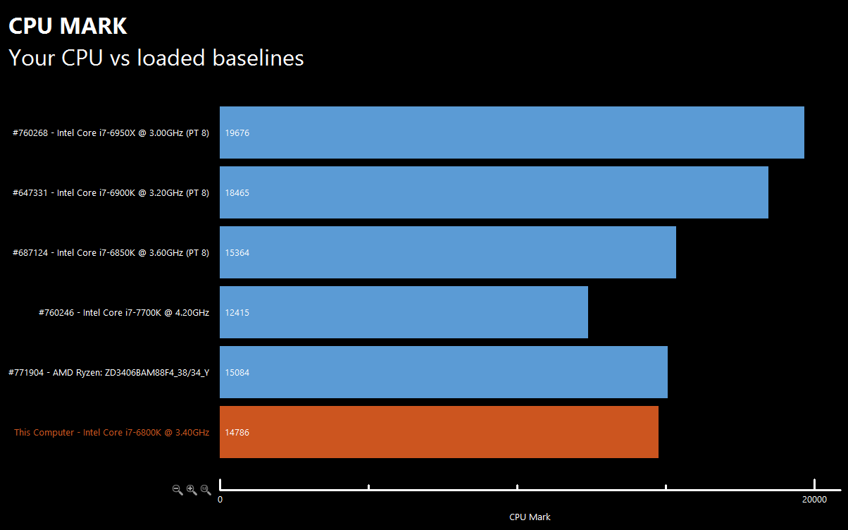 Восьмиядерный процессор AMD заметно превзошёл конкурента в целочисленных операциях, уступив ему в вычислениях с плавающей запятой. Однопоточная производительность оказалась выше у Core i7-6800K. За счёт этого последний теоретически должен быть предпочтительнее в качестве CPU для игр. Правда, на основе одного лишь PassMark PerformanceTest делать выводы пока рано.