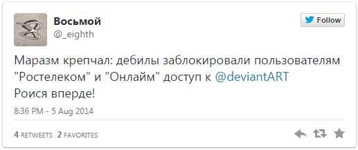 Первые сообщения о блокировки DeviatArt начали поступать вечером 5 августа.