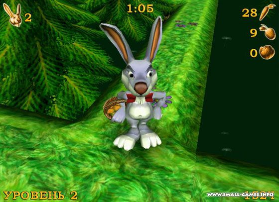 Суть игры заключается в том, чтобы бегать зайцем и в корзинку собирать овощи: морковку, свеклу и капусту. Эта игра кажется на первый взгляд простой но это только кажется. Первые уровни достаточно легкие и пройти их не составляет труда, но чем дальше тем труднее дойти до "кроличей норы".