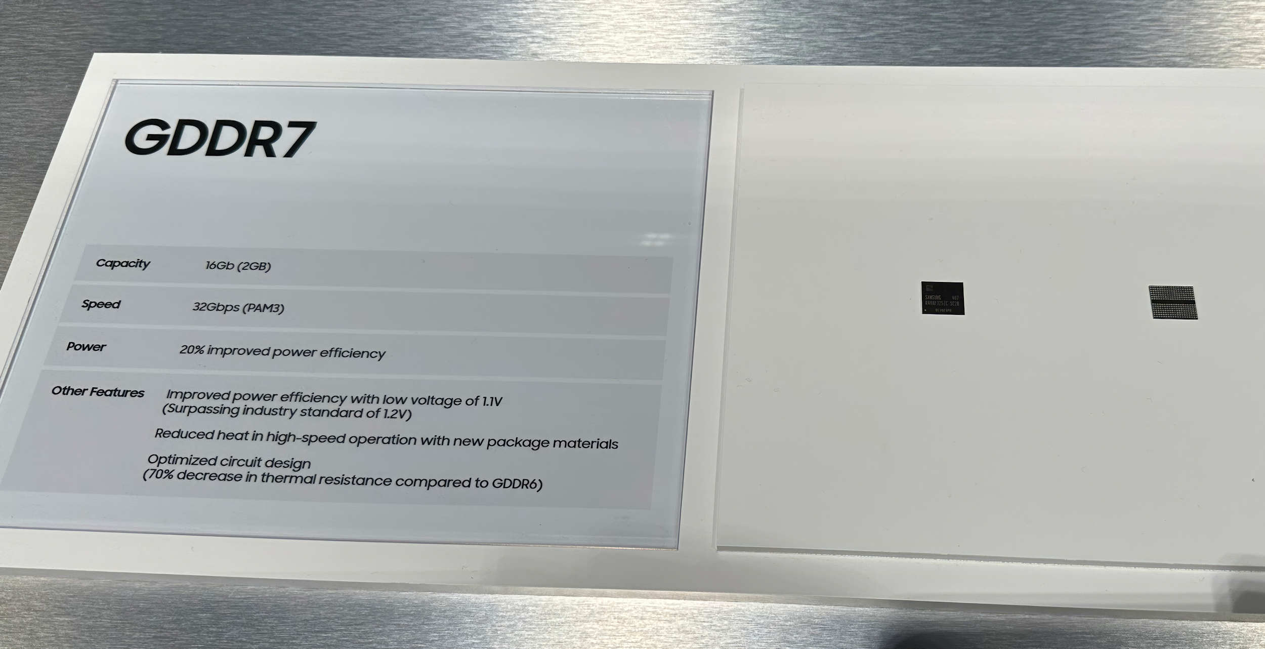 Samsung Electronics продемонстрировала на GTC свои последние новинки в области графической памяти, представив свой новый чип памяти GDDR7 со скоростью 32 Гбит/с.