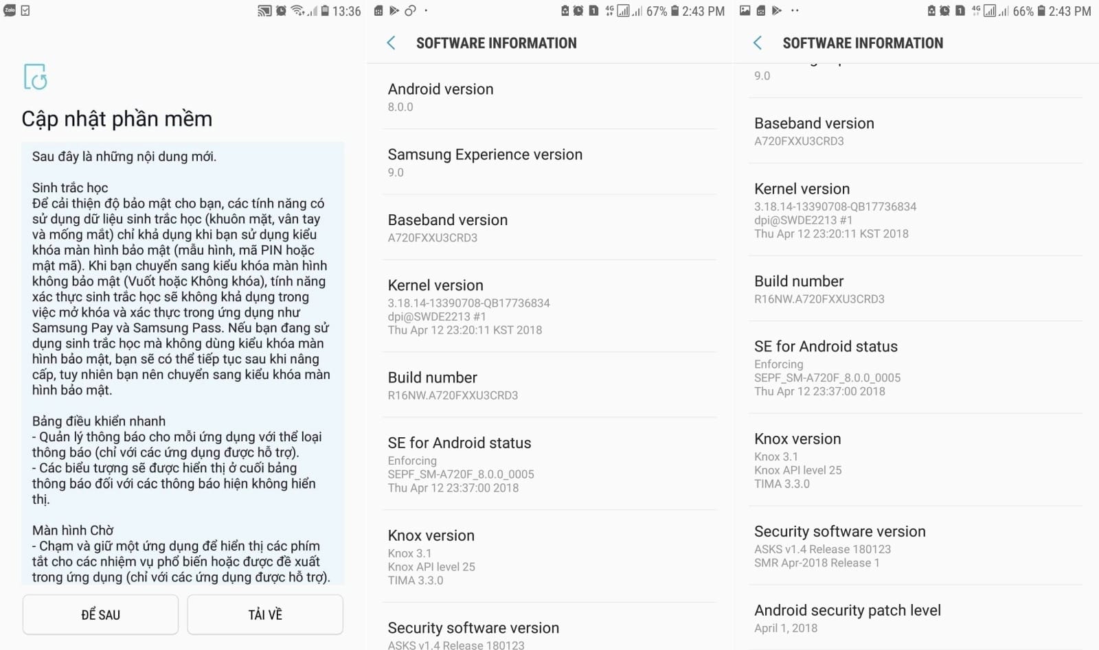 Речь идет о сборке под названием A720FXXU3CRD3, которая основана на Android 8.0 Oreo. В ней содержится новейший патч для системы безопасности от Google за апрель. Жители других регионов мира, владельцы Samsung Galaxy A7 (2017), о доступности новой прошивки пока что не сообщают, однако уже скоро это случится. Хорошая новость в том, что до России новейшая операционная система доберется в ближайшие дни.