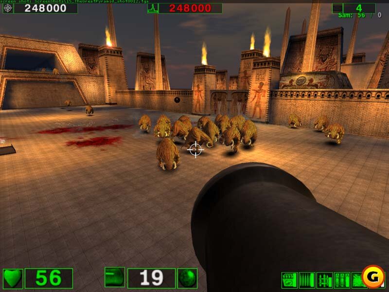 Я думаю, в представлениях ни игра, ни собственно пушка не нуждаются. Сам по себе Крутой Сэм, выполнен с неким стебом над классическими мясными шутерами и доставляет немало лузлов и бугагашенек, не скатываясь в откровенное убожество(по крайней мере первые две части). Наименование расшифровывается как Seriously Big Cannon - серьезно большая пушка. Для тех кто не имел удовольствия поупражняться в стрельбе по воробьям, механика стрельбы такова: вынимаем из кармана пушку стилизованную под гротескное артиллерийское орудие восемнадцатого века и легким нажатием на ЛКМ пускаем ядро, которое вылетев из жерла катиться по земле, рикошетя от стен и взрываясь при попадании во врага. Профит.