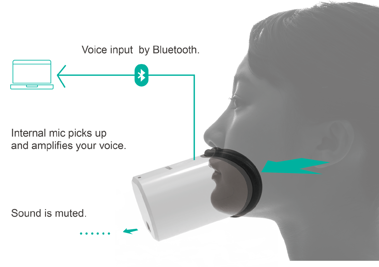 Микрофон представляет собой коробку овальной формы, корпус микрофона состоит из звукопоглощающего материала и эластичных ремешков которые надеваются на лицо и выглядят как намордник.