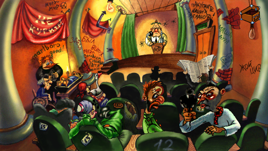 С адвенчурами же история принципиально другая. Геймплей адвенчуры, какой бы она не была гениальной, неизбежно сведется к двум вещам - пиксельхантингу по локациям и перебору предметов и реплик. Это все можно терпеть, например, в шедевральных первых двух Discworld`ах или в серии Deponia - но при этом "терпеть" все еще не равняется "получать удовольствие". Ну и исторически так сложилось, что основную массу доступных представителей этого жанра в моем детстве составили так называемые "русские квесты". С этими красавцами все еще веселее - то, ради чего теоретически надо продираться сквозь стандартный квестовый геймплей, а именно сюжет, концепция и дизайн, тут еще омерзительнее необходимости пиксельхантить - запредельно помоечный уровень тут еще и сопровождается посконной гордостью: "Эх, могем! Практикуем!". Практиковали, если кто не в курсе, примерно вот такое: