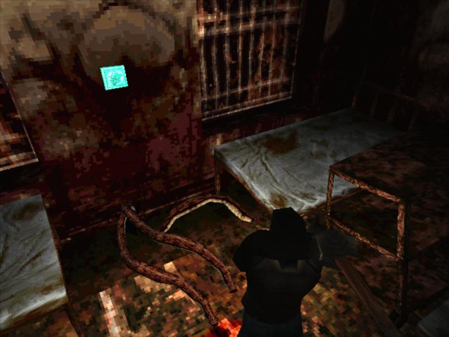 И, в-третьих, графика. Здесь, в отличие от Resident Evil, где трехмерные модели персонажей бегали по двухмерным задникам, полностью трехмерная графика. Конечно, сейчас графика игры выглядит, мягко говоря, устаревшей, но для своей платформы игра очень неплохо выглядела. Однако, как говорится, красота требует жертв, и поэтому полностью трехмерная графика вылилось в повторяющиеся текстуры, бедную декорацию уровней и довольно жутковатых моделей персонажей (если сравнивать с Resident Evil 2). Да и, честно говоря, качество анимации и видеороликов заметно недотягивают до детища Capcom. Кстати, густой туман здесь прикрутили не для красоты. Так для чего тогда? Правильно, для сокрытия от глаз устаревшей графики.