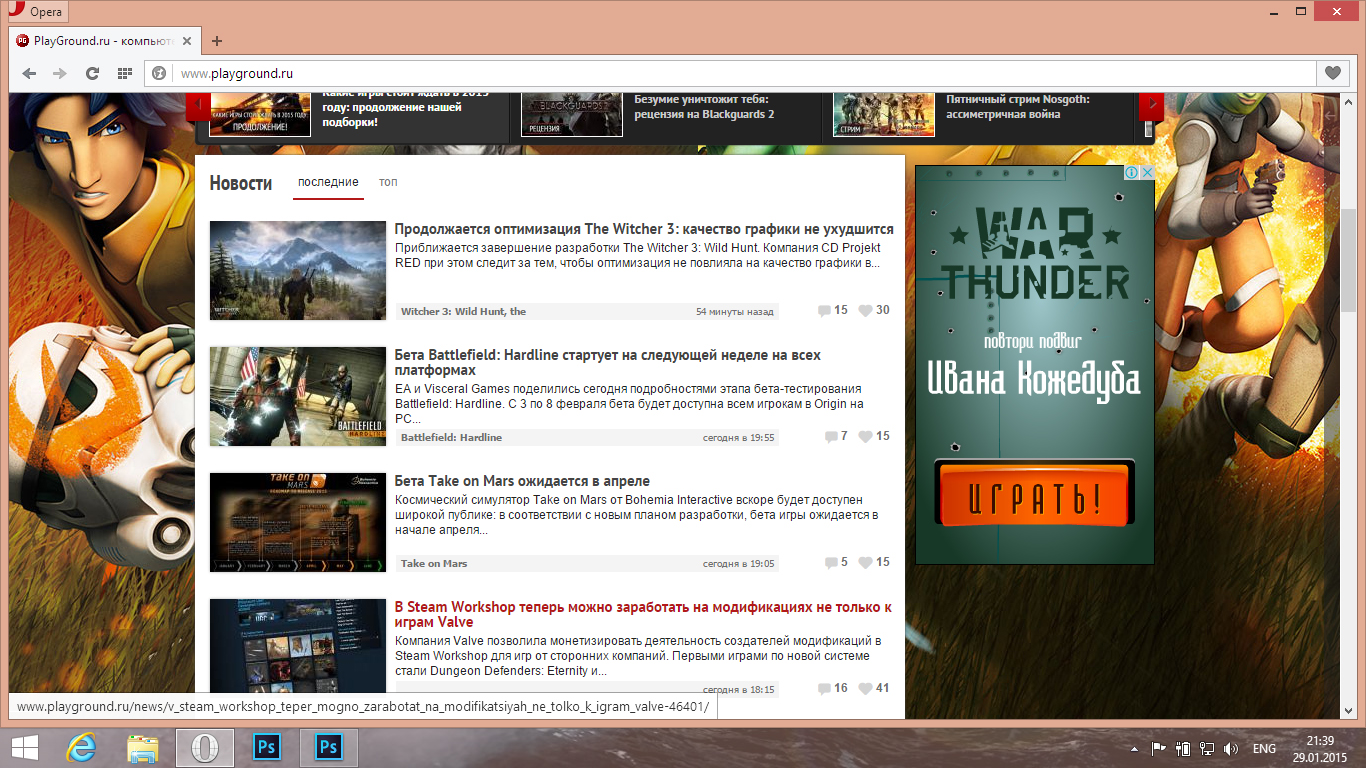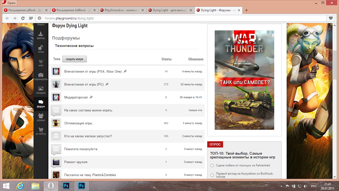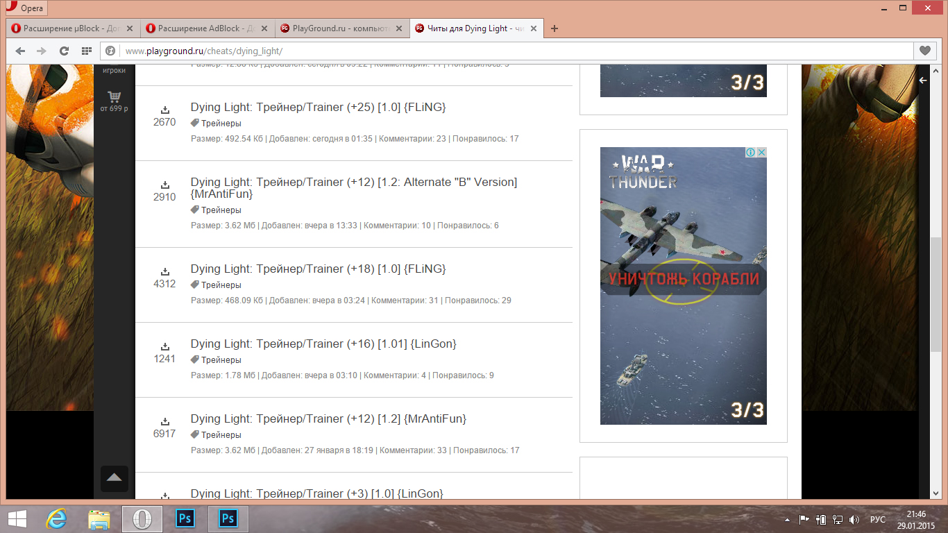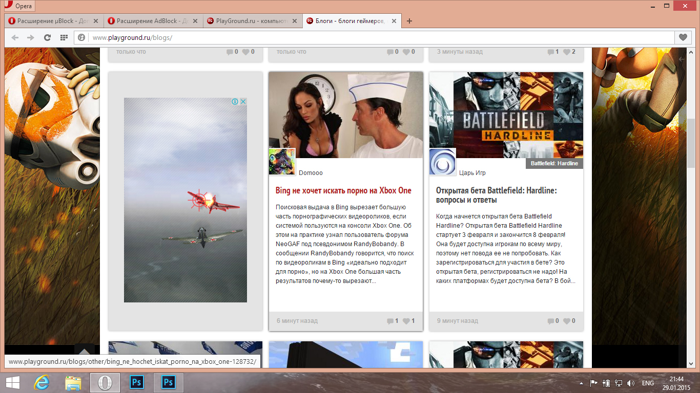 На улице была ночь и жуткий туман, температура воздуха была около 0C°. И приблизительно в 21:40 у меня слетел AdBlock. И вот тут, я зашёл на PG. Увиденное меня поразило. Количество рекламы было вполне нормальное. Но тупость рекламы меня поражала. Особенно War thunder и ему подобные баннеры.