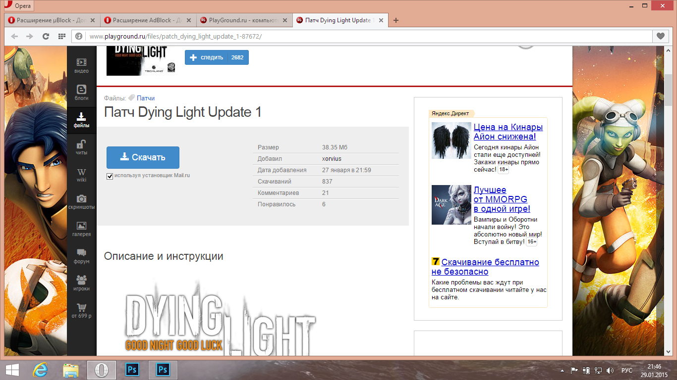 > слетел AdBlock. > зашёл на PG.