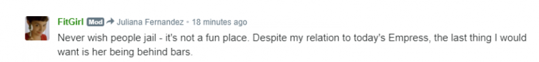 Сегодня ночью на Reddit появилась информация от самой Empress, якобы FitGirl совместно с другим репакером Masquerade каким-то образом смогли её вычислить и поделились информацией с правоохранительными органами.