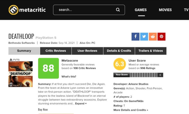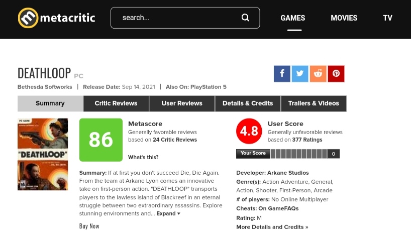 Но на Metacritic оценки среди игроков у Deathloop достаточно средние, если не низкие.