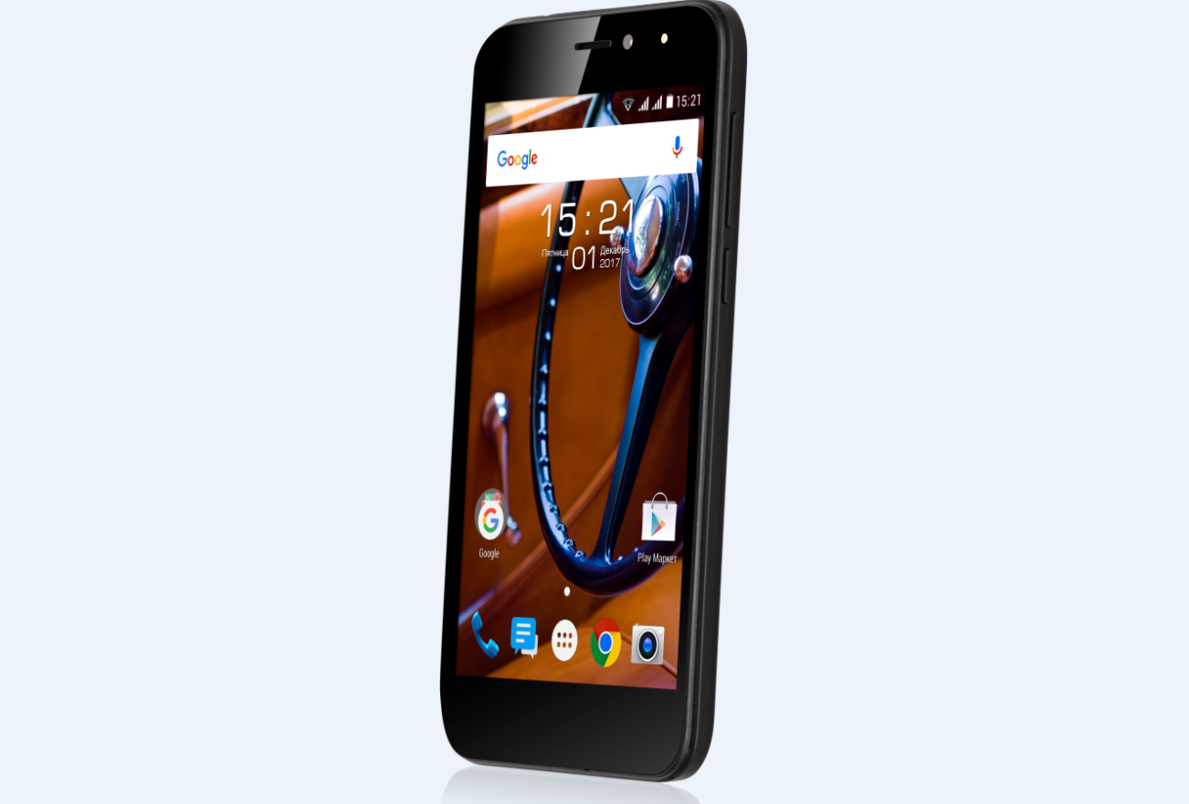 Он оснащается 5-дюймовым IPS-дисплеем с разрешением HD (720 x 1280 пикселей) и стеклом 2.5D, сканером отпечатков пальцев на задней панели, 2-мегапиксельной фронтальной и 8-мегапиксельной основной камерами. Аппаратной основой стал четырехъядерный процессор MediaTek MT6737 с частотой 1,3 ГГц, 1 ГБ оперативной памяти и 8 ГБ встроенной флеш-памяти с возможностью расширения карточками формата microSD объемом до 32 ГБ.