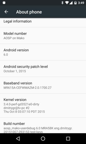 Благодаря усилиям господина Гринберга, доработавшим исходный код системы Android 6.0, предназначавшийся изначально для планшетных компьютеров Nexus 7 (2013), владельцы Nexus 4 могут теперь примерять «зефирную» (Marshmallow) оболочку на своих аппаратах. Правда, стоит понимать, что установка пользовательской прошивки — Custom ROM — выполняется исключительно на свой страх и риск. В любом случае вы окажетесь лишены возможности получения автоматического OTA-обновления Android 6.0 до следующих версий, поэтому все манипуляции с операционной системой придётся выполнять вручную.