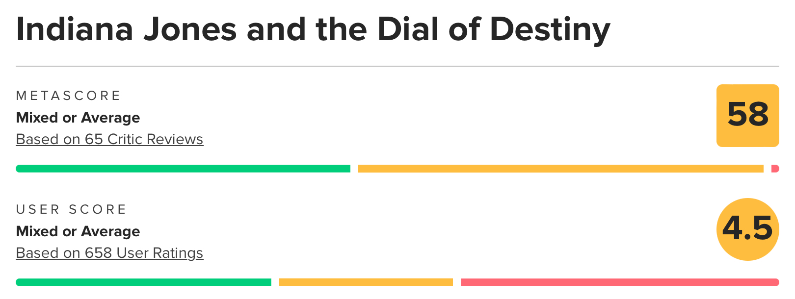 В 2023 году на большие экраны вышел фильм "Индиана Джонс и колесо судьбы", который, хотя и понравился зрителям, все же не смог собрать большого количества зрителей в кинотеатрах. Возможно, в этом виноваты изначально негативные рецензии, поскольку позже критики, посмотревшие картину, отнеслись к ней более снисходительно. На Rotten Tomatoes у фильма 70% положительных отзывов от обозревателей и 88% от зрителей. Как оказалось, низкие продажи билетов и дополнительные затраты на производство привели к тому, что фильм принес Disney немалые убытки.