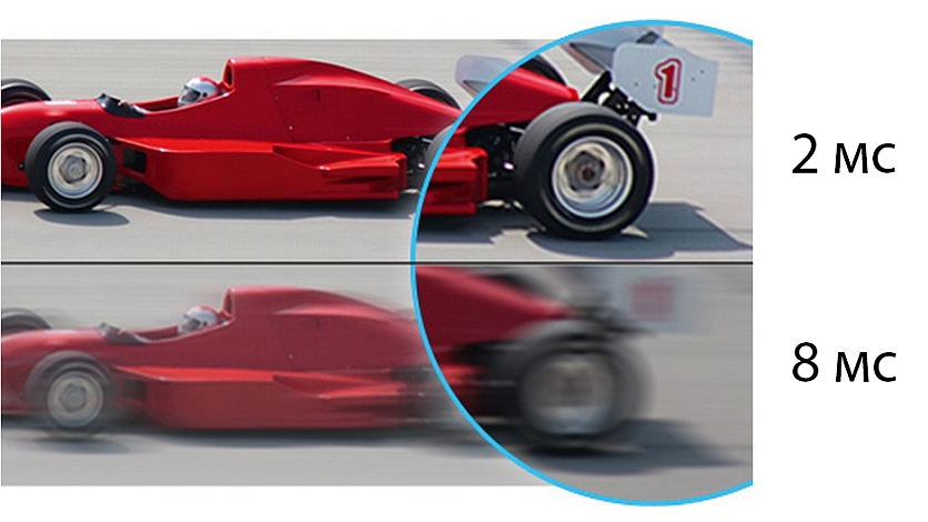 В сухом остатке, TN+Film будет хороша только при очень ограниченном бюджете или по-настоящему серьёзном увлечении киберспортом, когда время отклика и скорость отрисовки кадра важнее качества самой картинки (кто там на этих турнирах обращает внимание на графику?). Во всех остальных случаях предпочтительнее выбрать IPS/*VA и порадовать глаза. Не менее важно время отклика — это тот отрезок времени, за который происходит изменение положения кристалла в пикселе. Грубо говоря, задержка смены картинки на экране. Чем она ниже — тем заметнее будет «шлейф», тянущийся за быстро движущимся изображением.