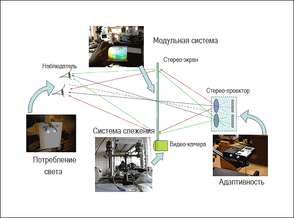Схема работы адаптивного 3D-дисплея (иллюстрация ФИАНа).