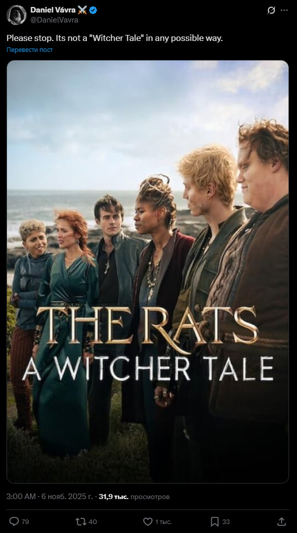 Пользователи в социальной сети X согласились с разработчиком. По мнению геймеров, Netflix совершенно не понимает задумку оригинальных книг Анджея Сапковского. Такой подход сильно отразился на отображении «Крыс» в спин-оффе.