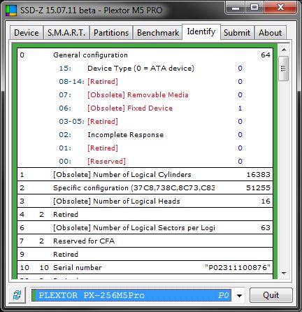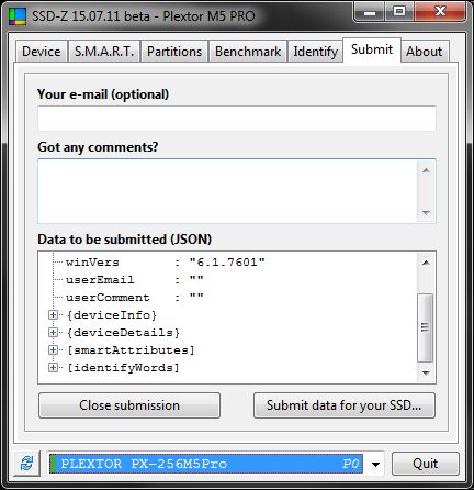 На данной вкладке вы можете узнать различную служебную информацию о выбранном накопителе и пояснение к ней. И наконец последняя вкладка это "Submit".