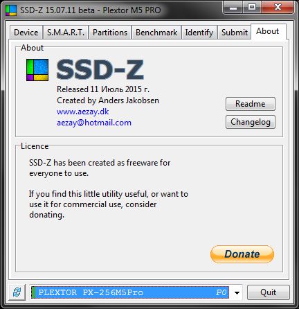 Несмотря на название, она поддерживает и другие виды накопителей, но с меньшим функционалом. Программа, как видим, напоминает по интерфейсу CPU-Z, но со своими особенностями. На вкладе "About" вы можете узнать об авторе и как с ним связаться. Замечу, что программа пока находится в стадии бета, но у неё есть будущее.
