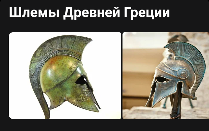 Опять... Почему так сложно загуглить "греческий шлем" и увидеть какими они были? Опять отсебятина. И ещё ладно ему ухо оторвут в потасовке. Так он же сам себе его отрежет таким шлемом!