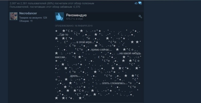 Наиболее часто подобные обзоры можно встретить в отзывах об играх CS GO, Payday 2, Бесконечное Лето, Dota 2 и другие