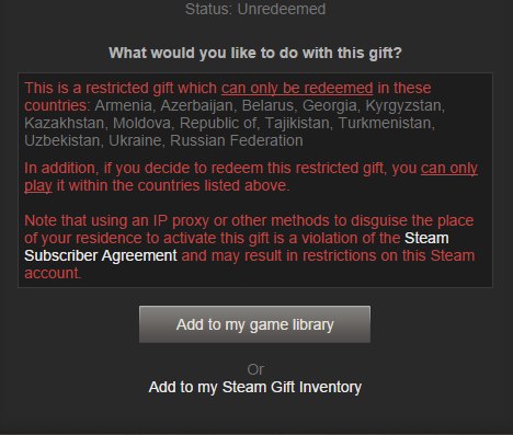 Допустим, вы купили игру в подарок в России. И отправили код активации другу в США. Раньше со многими играми такой вариант был возможен. На этом был построен пусть и небольшой, но серый рынок перепродажи Steam-ключей. Теперь этот рынок исчезнет. Пользователь в США не сможет активировать игру (для этого ему придется сменить IP-адрес). Важно понимать, что находясь в Западной Европе вы также не сможете сыграть в игры из своей библиотеки — сработает геоблокировка.