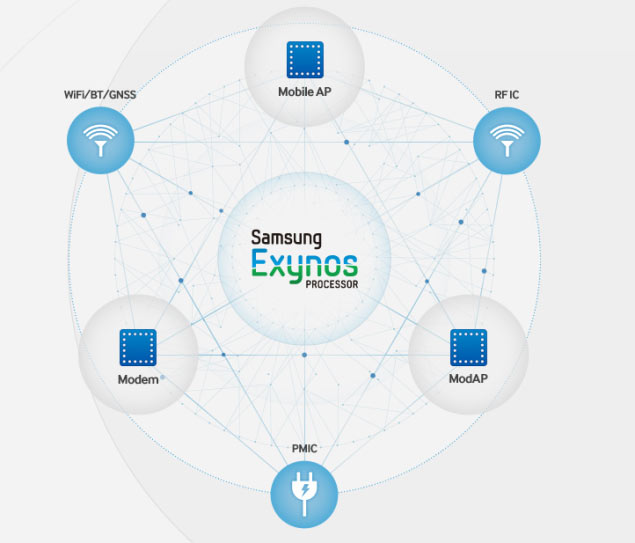 В состав SoC войдет четырехъядерный процессор собственной разработки Samsung. Тактовая частота процессора названа равной 2,4 ГГц. Выпускаться однокристальная система будет по 14-нанометровой технологии FinFET.