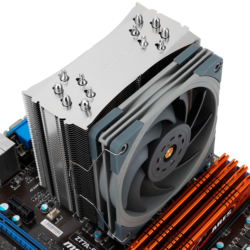 Thermalright Ultra 120EX REV.4 представляет собой процессорный кулер, выполненный по классической башенной конструкции. Радиаторный стек нанизан на 6х 6-мм тепловых трубок, в основании медная теплораспределительная пластина. Вместе с вентилятором новинка имеет габариты 132 х 90 х 157 мм (Ш х Г х В) и массу 865 грамм.