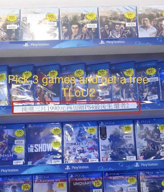 А вот например в другом азиатском магазине, the last of us 2 отдают совершенно бесплатно, если покупатель приобретёт любые три игры на выбор, для консоли playstation.