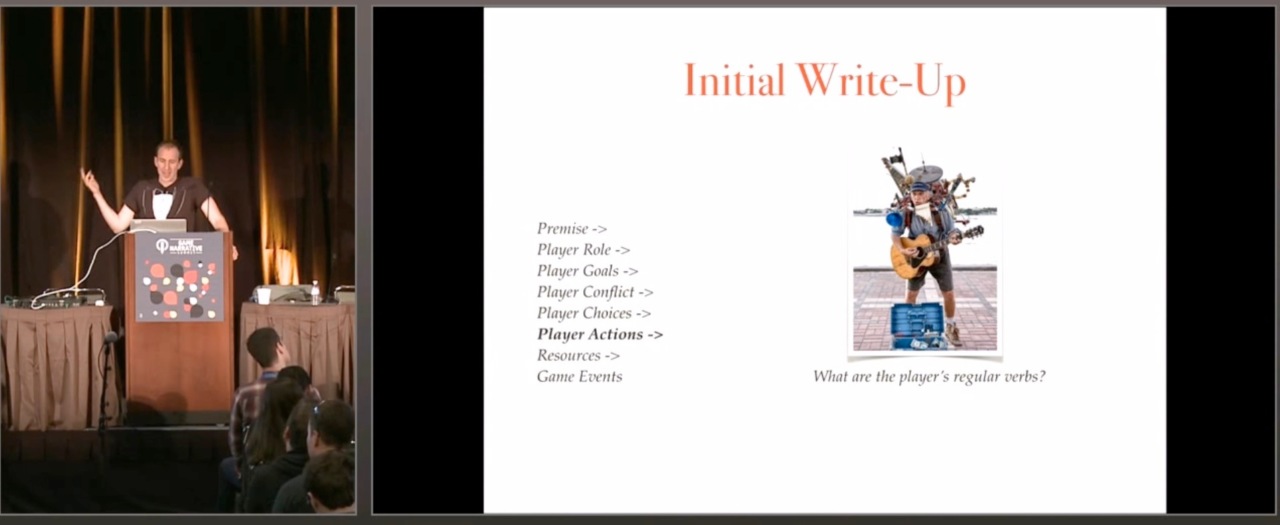 — Предыстория (premise) — самая весёлая часть. Просто пишите всё, что вам хочется, что кажется вам интересным в будущей игре, но не дольше 10 минут. Такое ограничение обратит ваше внимание только на самые впечатляющие и важные вещи и сэкономит много времени.