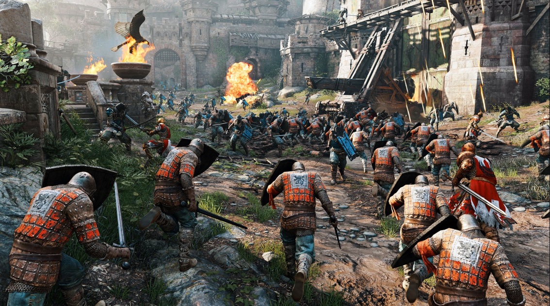Визуальная часть игры выполнена на высшем уровне. Графика очень радует, постоянно куда-то летят горящие снаряды, таран пробивает ворота, пока десятки людей дерутся на поле боя, ну и особенно выделяются очень кровавые добивания, которых у каждого персонажа несколько и все они разные.