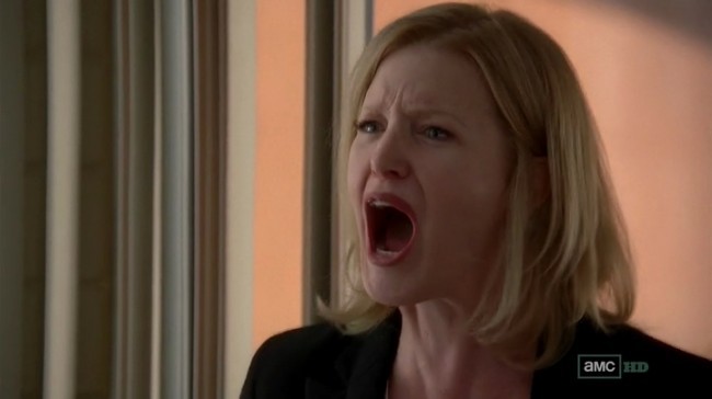 И на пьедестале нервного срыва засела Скайлер Уайт/Skyler White из Во все Тяжкие/Breaking Bad...Сестра сатаны и богиня шизофрении,довела некурящего мужа до рака лёгких:)
