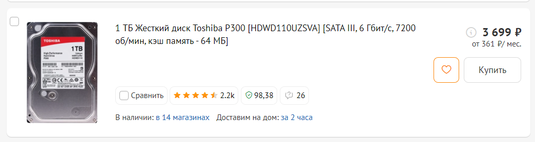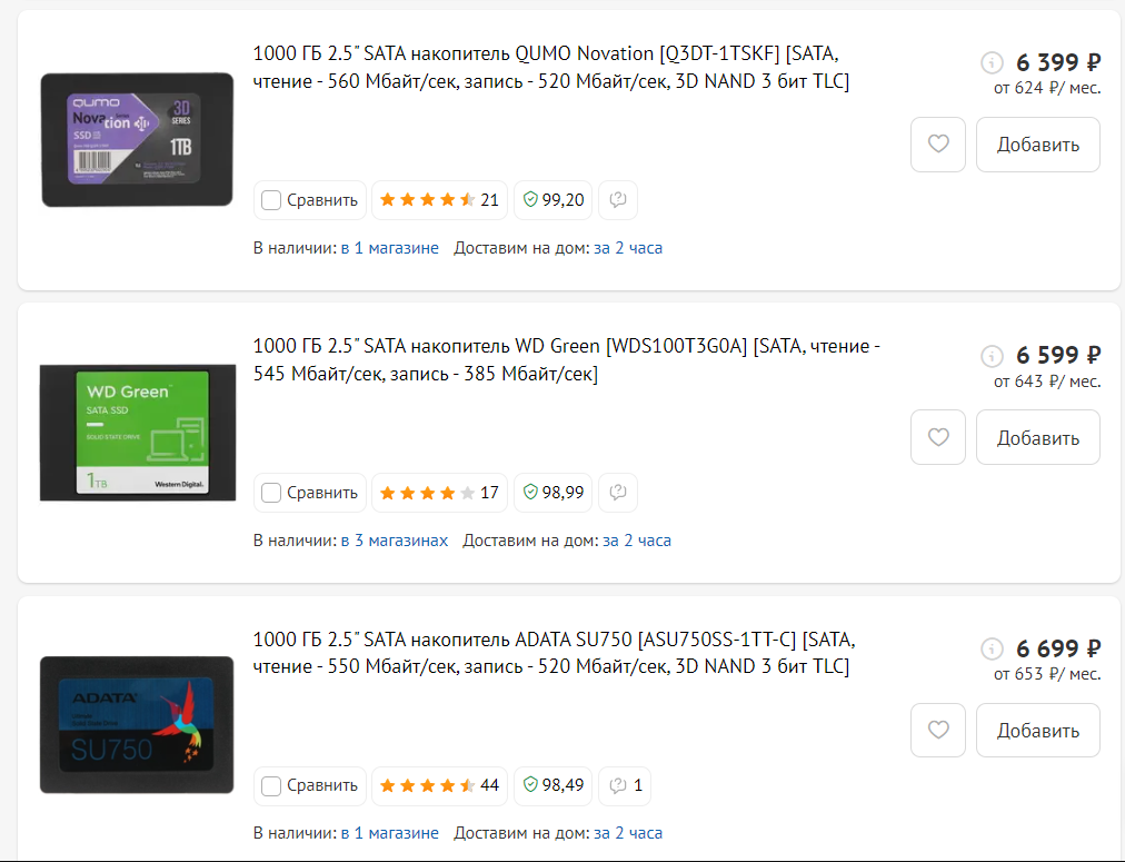 В эпоху видеокарт за 100000 руб. и более, стоимость жёстких дисков ещё более-менее. Люди ради того, чтобы позволить себе 4090, а не 4080, готовы экономить на всех остальных комплектующих.