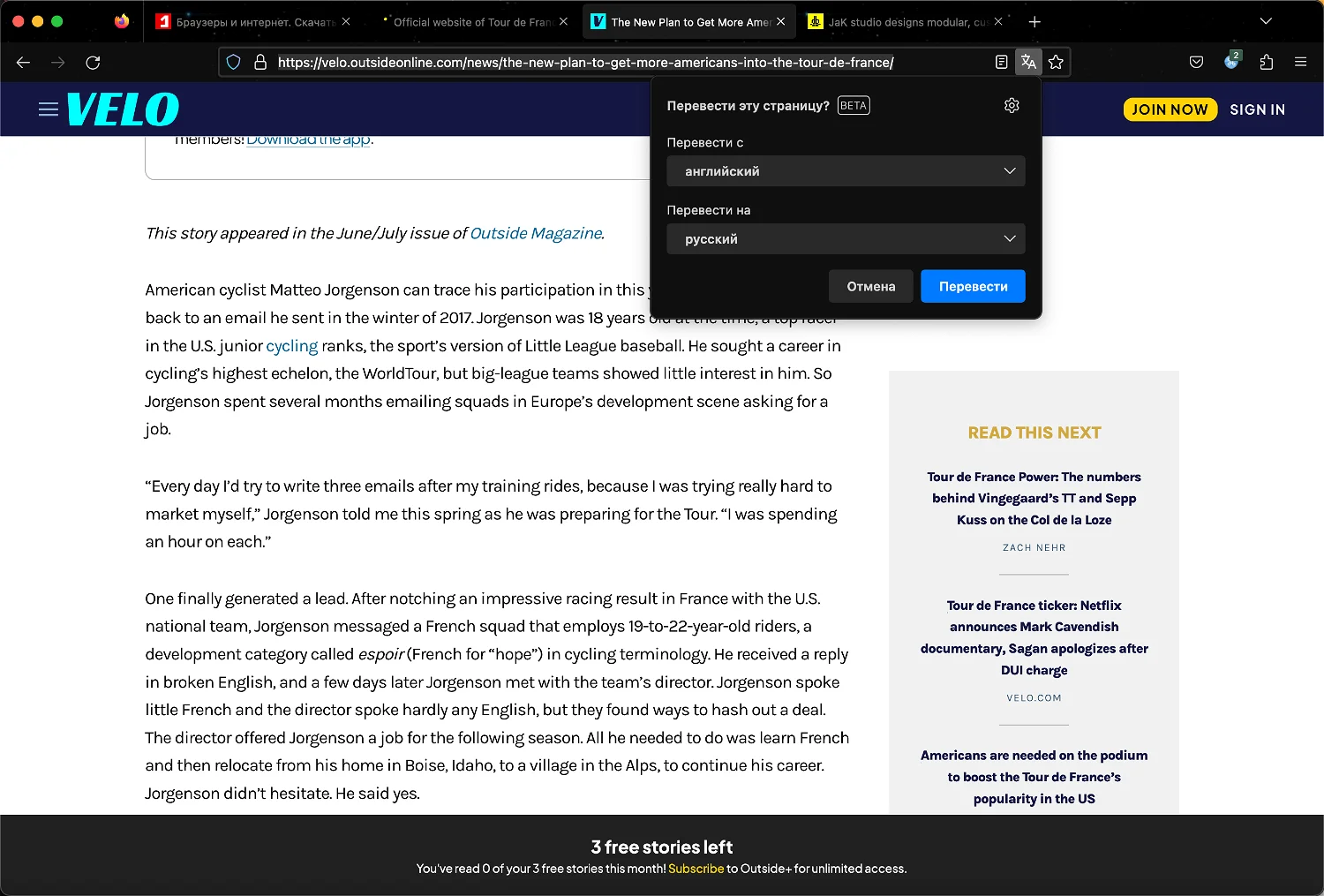 В бета-версии Firefox 117 добавлен автоматический переводчик сайтов. В отличие от Chrome, где перевод обрабатывается на серверах Google, Firefox переводит текст на локальном устройстве, обеспечивая большую конфиденциальность и работу без подключения к Интернету.