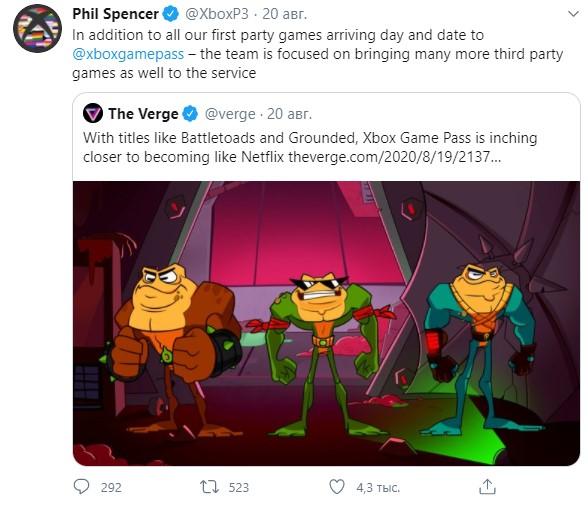 Глава Xbox Фил Спенсер в твиттере объявил, что в подписочном сервисе Game Pass появится больше игр, созданных сторонними разработчиками. Ранее он обещал «сильные» анонсы для платформы.